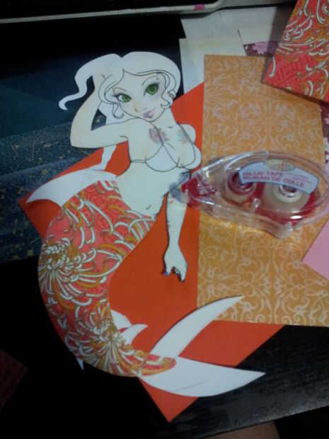 Cinta uso pegamento para adherir el papel al dibujo. La mía es de la dollarstore.
