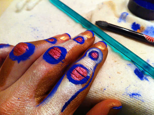 Yo sólo libre [hur hur hur] el diseño de mi mano. Yo busqué en Google la pintura de la cara de Space Ace y lo tenía en mi teléfono como lo hice. Bueno para sacar su primera si idea quieren tener un aspecto específico. Luz de pintura colores en primer lugar, usan cepillos más grandes para cubrir áreas más grandes y luego usan colores oscuros. Micas son buenos para grandes áreas [fondos para pintar diseños de] y les puede diluir un poco más que la mayoría de los pigmentos sin rayas.