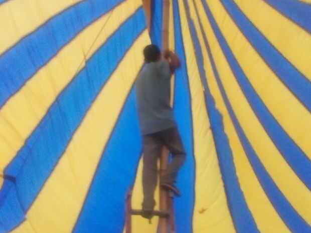 1. construir un poste resistente en el centro del lugar del evento.