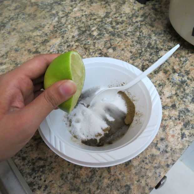 Mezclar con agua o jugo de limón. utilizar uno u otro, no una combinación.