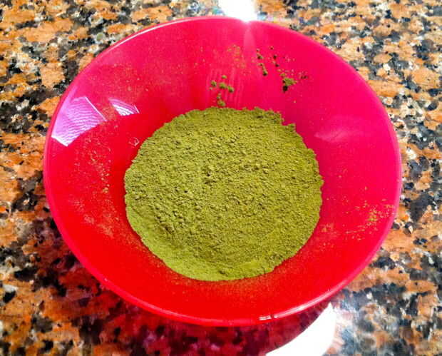 Paso 2: Mida 1/4 de taza de henna en polvo cernida en un bol