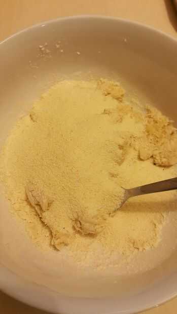 El tercer paso es tamizar la harina. A continuación debe agregar la sémola y revuelva otra vez.