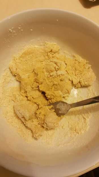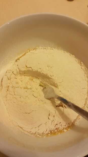 Después de añadir el último ingrediente que es la harina cernida. Ahora sólo tienes que amasar hasta que tenga pasta dura.