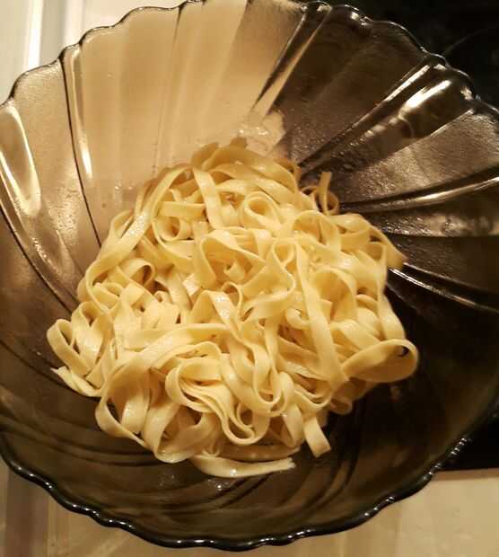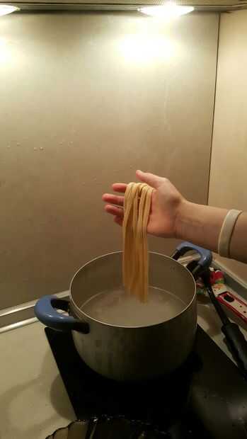 Para este paso tienes que agarrar una olla grande, añadir agua hirviendo y sal. A continuación, puede simplemente pone su pasta y espera hasta que suba a la superficie del agua. Tadaaa, la pasta está lista. Si desea puede decorar con aceite de oliva.