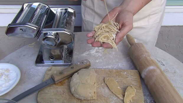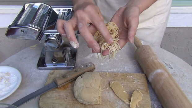 Una vez que sus fideos tienen un buen lazo (ver arriba), déjelas secar durante unos minutos.