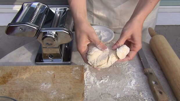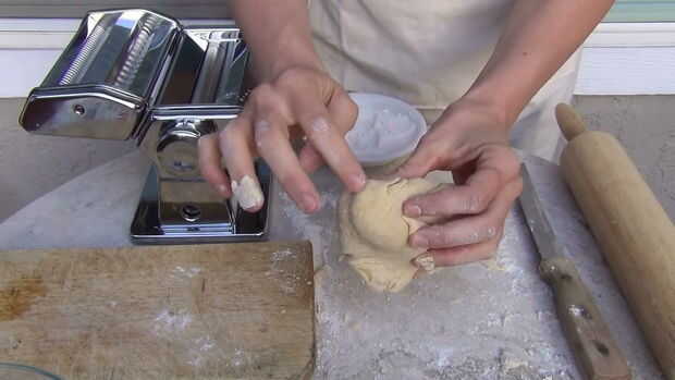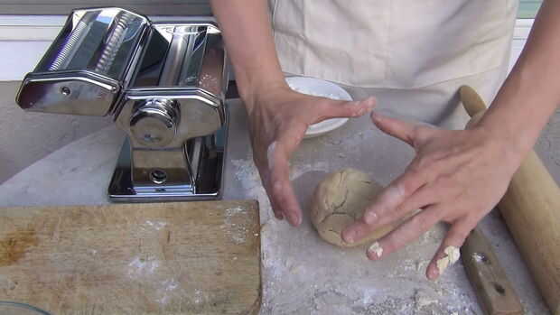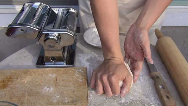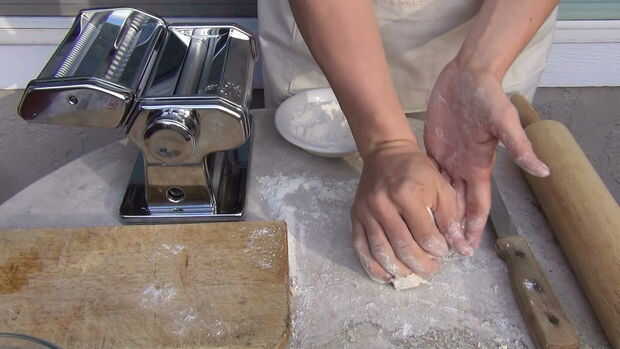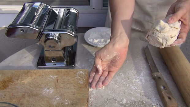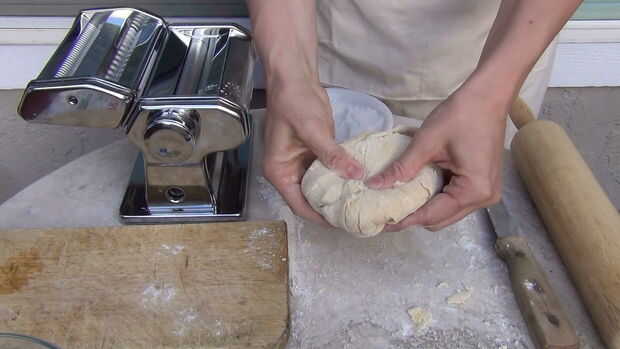 Amasado prolongado mejora el sabor y la textura de la pasta acabada. Prisa los tallarines se palo y tire a través de los rodillos y aparte se disuelven en el agua de cocción.