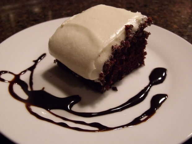 Pastel de chocolate oscuras estilo Nueva York es una de las tortas de chocolate más oscuras, más rico y más densas que nunca tenga el lujo de comer. Que consiste en capas de esponjoso pastel separados y cubierto por una escarcha de natilla-como grues