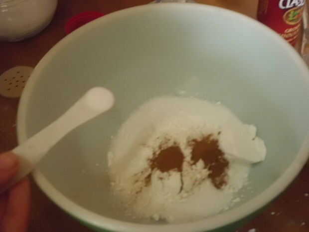 En un recipiente, mezclar 3/4 taza azúcar blanca, 3 cucharadas almidón de maíz, 1/2 cucharadita de canela y 1/4 de cucharadita de sal hasta que estén completamente mezclados con no agregados.