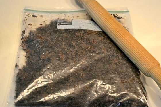 Tome un perno de balanceo y machacar las galletas hasta que alcancen una consistencia grumosa.