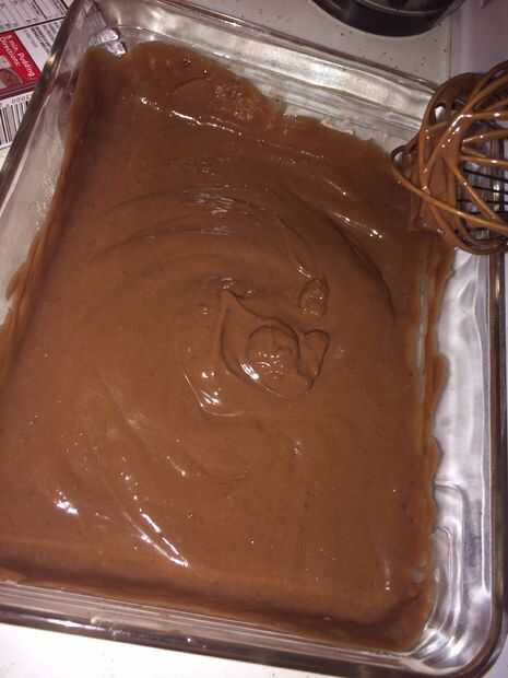 De aproximadamente 2 minutos (o hasta que la mezcla esté espesa) batir la leche y el pudín. Esto es lo que debería ser el producto final de la morcilla.