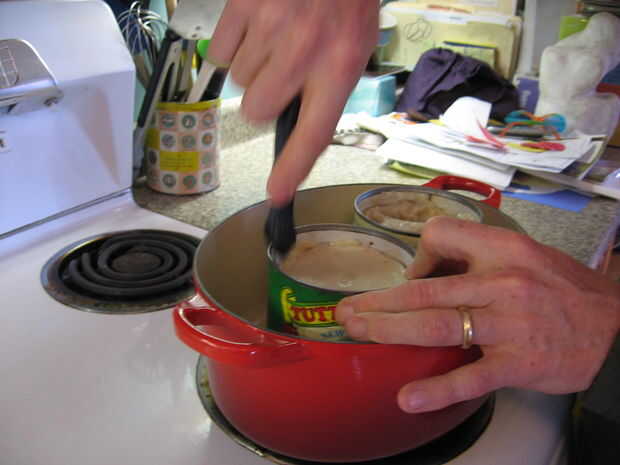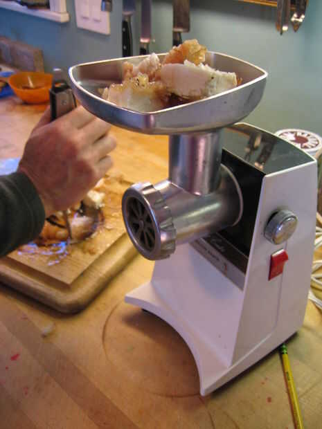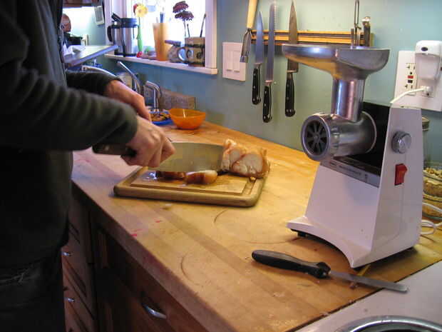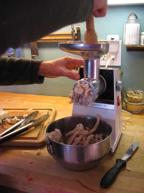 Si se utiliza sebo de carne de res, desmenuzar antes de fundirse. Utilizamos un organillero para conseguir el sebo de res en trozos pequeños. El sebo de carne de res se derretirá rápidamente, también.