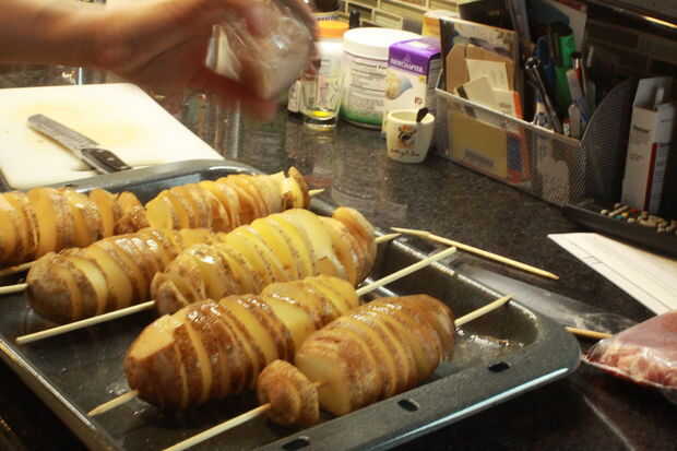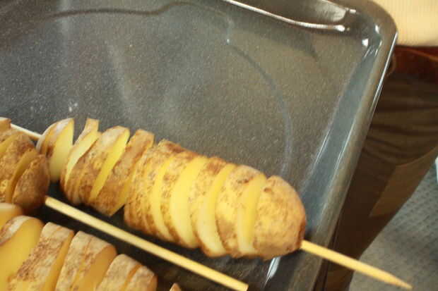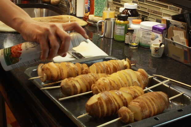 • Una vez que tus papas ven algo como esto y están todos corte para arriba, rociar con aerosol de cocina