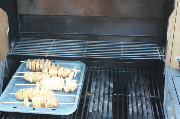 • Asegúrese de que la parrilla está en medio y pone las patatas en cocción durante unos 10 minutos