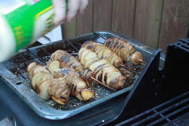 • Spray de mantequilla y otras especias que desee sobre las patatas