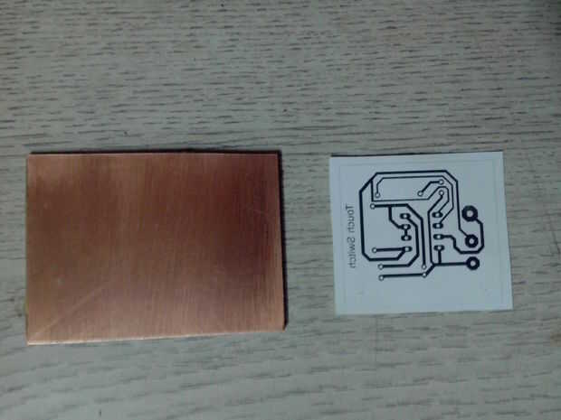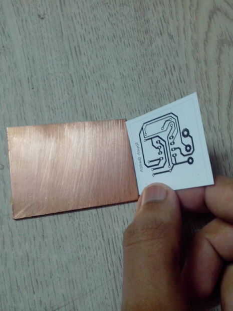 Hierro en método de papel brillante: transferir la imagen impresa en el papel de la foto a la Junta. Asegúrese de voltear la capa horizontalmente. Ponga la superficie de cobre de la Junta Directiva en el diseño de impreso. Asegúrese de que la Junta está alineada a lo largo de las fronteras del diseño impreso. Poner cinta a los dos lados lado de la Junta no cobre. Esto ayudará a sostener el tablero y el diseño impreso en su posición.