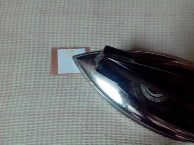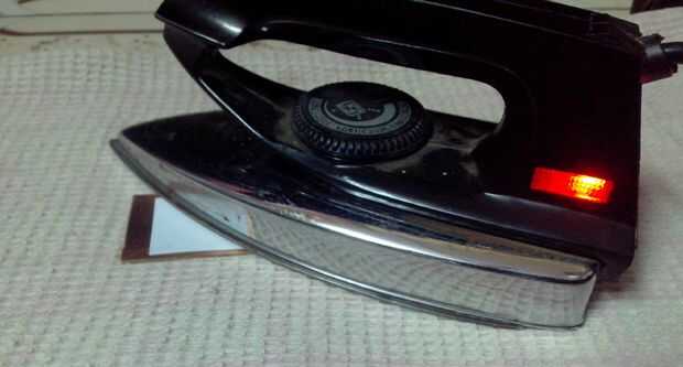 • Después de la impresión en papel brillante nos hierro lado imagen a lado de cobre. Calentar la plancha a la temperatura máxima.