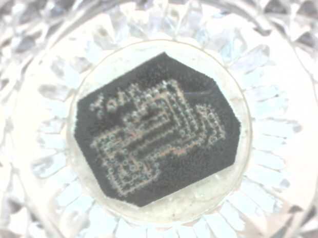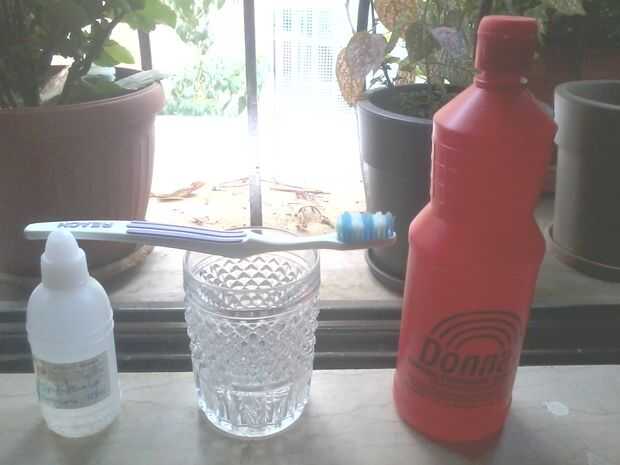 Este paso requiere las medidas de seguridad que describí al principio. Sólo cayó la Junta en el vaso y añade algún ácido clorhídrico. Luego algunas gotas de peróxido de hidrógeno y deja por un minuto o dos. Entonces comenzó a cepillarse suavemente con la "herramienta de la ayudante especial" (ya no es un cepillo de dientes).