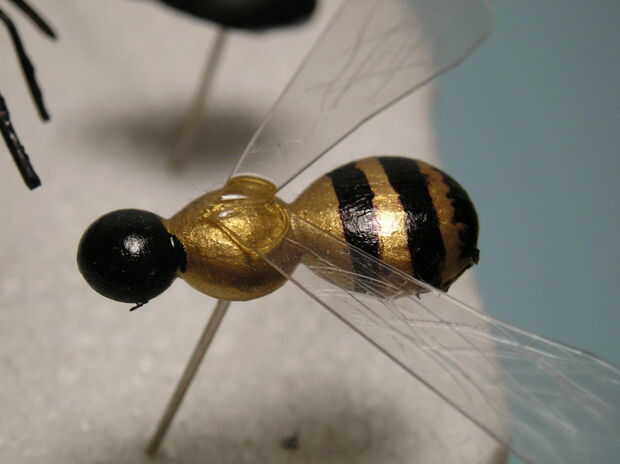 De los errores hechos, recuerda: cabeza, tórax y abdomen... Ver fotos en cuanto a cómo funciona con el pegamento. Para la araña, dos partes son suficientes, pero moscas dragón, hormigas, abejas y moscas tienen tres partes bien diferenciadas.