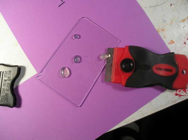 Este es otro paso que tiene cierto peligro conectado con él.  Usar un raspador como se muestra, y que exige toda mi atención al hacerlo.  NO DEJE QUE LOS NIÑOS USAN ESTA HERRAMIENTA!  Con cuidado, suavemente "pinchazo" en el pegamento hasta que se libere totalmente.