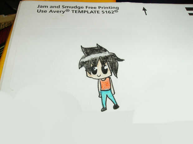 Lo primero que tienes que hacer es dibujar el diseño de pegatina en las hojas de etiquetas. Uso de que fuentes de su arte y su imaginación para hacer un diseño para sus etiquetas engomadas.