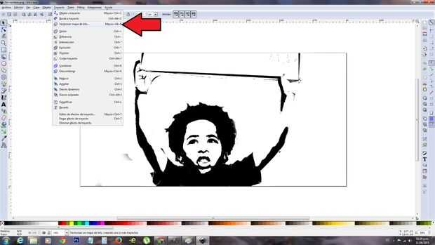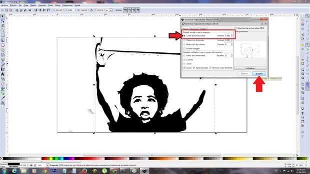 Vamos a la pestaña de Trayecto > Vectorizar mapa de bits y se abrirá la ventana correspondiente. El corte de luminosidad lo pondremos al umbral de 0.450 y aceptaremos.