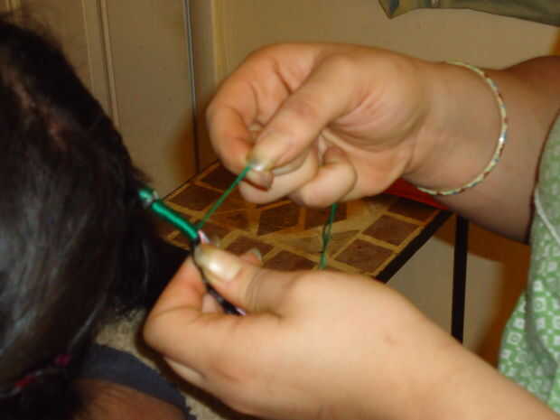 Seleccione el color que desee para comenzar con y empezar a envolver alrededor de la trenza tan ajustadamente como sea posible. No importa qué dirección envolver en, sólo recoger y quedarte con él. Mantenga todos los colores a la trenza como su abrigo. Es más importante que usted mantenga un agarre firme y viento bien entonces para ir rápido, pronto se encontrará un ritmo constante que trabaja para usted. Lo que usted Envuelva desea estar en un ángulo ligeramente hacia abajo (de lo contrario no vayas en cualquier lugar) y tenga cuidado de que cubra completamente el cabello.