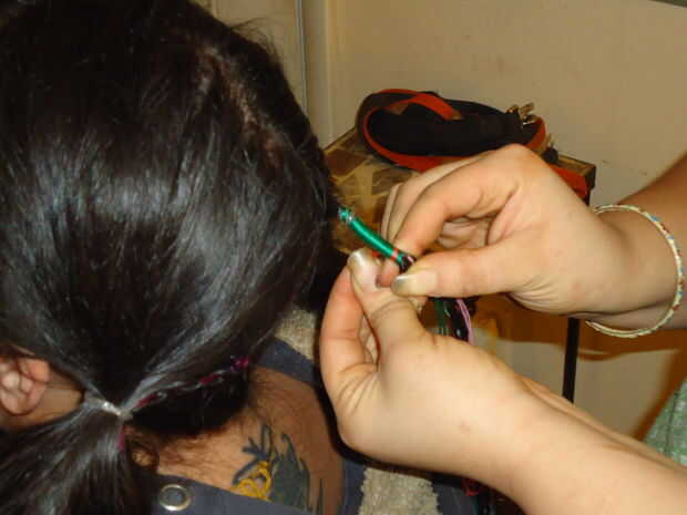 Sugerencia - If se ejecuta fuera de lugar de la cadena una banda con más cadena alrededor de él, justo encima de donde termina la cadena, luego envuelva con un ángulo hacia arriba como se indica arriba.