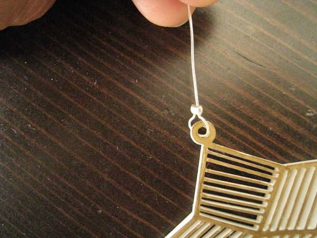 Usando los alicates, apriete hacia abajo la encrespadura firmemente. Esto se asegurará de que su ciclo no se deshecha y no abandono el colgante.