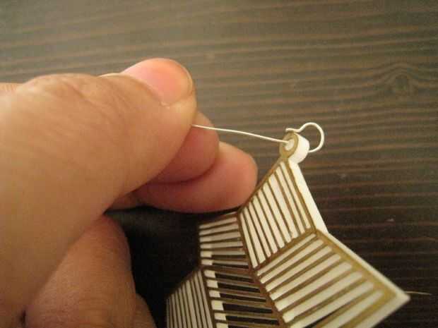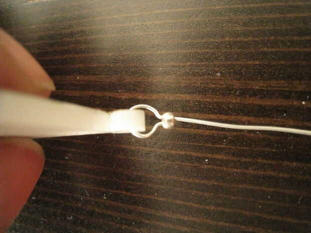 Luego un prensado en el extremo largo del cable del hilo de rosca para que se sienta en la parte superior del colgante y enrosque el extremo recto pequeño del gancho de la encrespadura así. La presión debería tener ahora el extremo largo del cable y el extremo corto del círculo en su interior. Eso significa que el está ahora creando un anillo y sosteniendo los dos cables en su interior.
