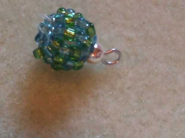 Poner el talón moldeado en un headpin y pegamento de los hilos de la parte inferior para que no se ve desordenado. Poner el grano de tamaño medio en la siguiente. Haga un bucle con los alicates redondos de la nariz. Montar el gancho de pendiente en el bucle que acaba de hacer. Ahora hacer un segundo pendiente utilizando los pasos anteriores y se todo lo bueno para ir!