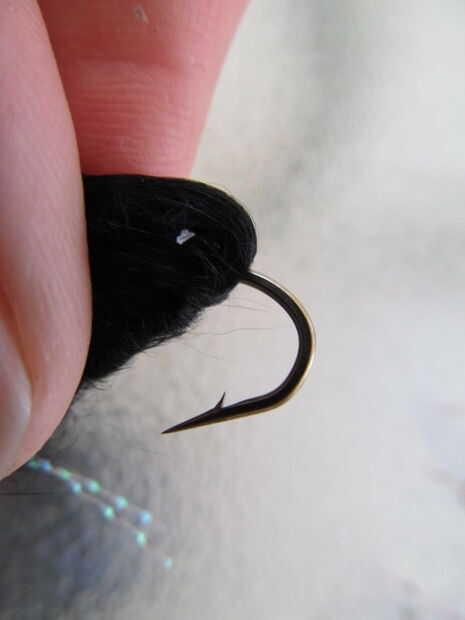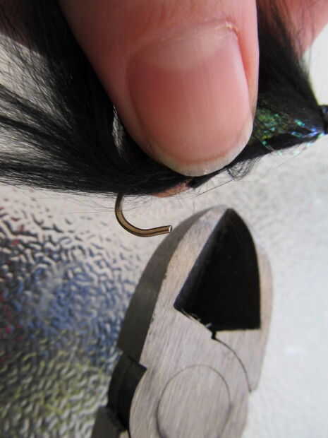 ' Tomar una de las moscas y cortar el gancho justo debajo de la lengüeta con lata cortadores tijeras o perno