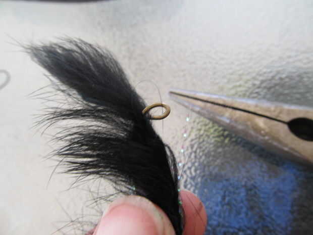' Tomar algunas agujas pinzas de punta y enrollamiento de la punta en así es el borde de corte contra la mosca (usted puede agregar cuentas si quieres también)