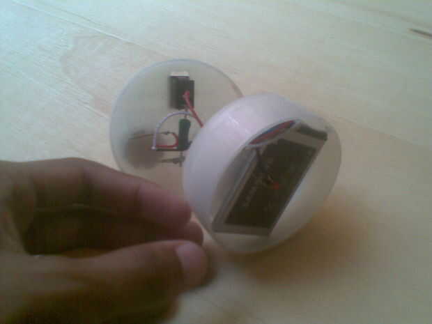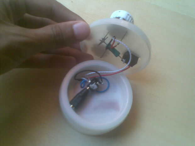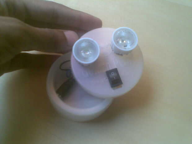un rescatado 5 m m llevados junto con un resistor de 68OHMS cuando conectado a un cargador con salida de 5 voltios produce lo que se muestra a continuación... remató con una pirámide hecha de cristal de una tienda de feng shui. se necesita una luz,,,