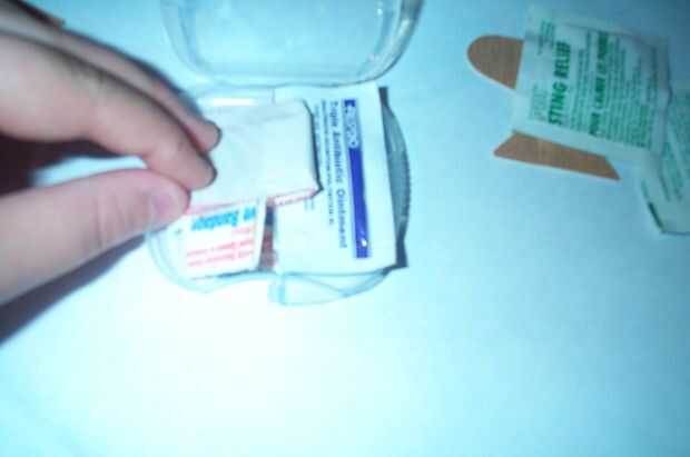 Tomar los curitas y los embalamos en. Luego tomar el paño desinfectante y ponerlo en la parte superior.