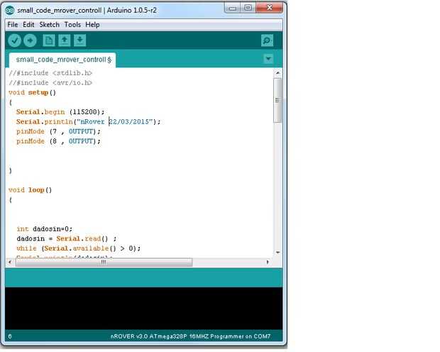 El código se puede cargar por un programador de Atmega utilizando la interfaz de Arduino, de procesamiento o con el estudio de Atmel.