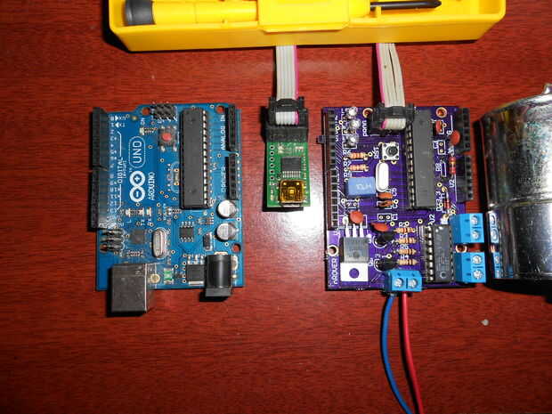 La Junta de nRover tiene el mismo tamaño y puertos de la placa Arduino, la fuente de alimentación puede ser de 7 a 15 voltios y puede controlar motores eléctricos de 3 a 12 voltios.