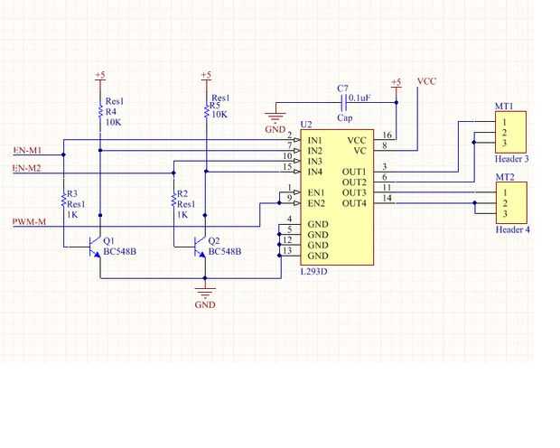 El L293D es un drivers de vaivén quad capaz de proporcionar corrientes de salida de 1A por canal (pico), que tiene interno piñón diodos (diodos amortiguadores) para proporcionar protección en un circuito inductivo.