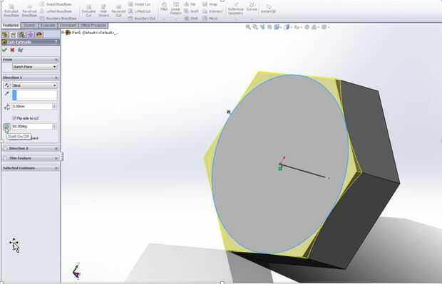 5. bajo sentido 1 la función Extruir corte, ajuste la profundidad de corte a 1 mm.