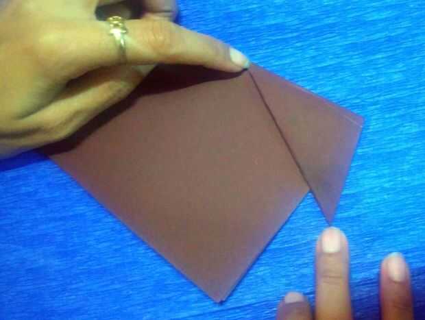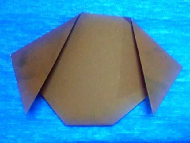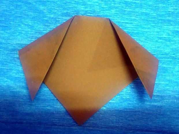 Paso 3. Ahora, doblar las esquinas derecha y la izquierda como se muestra para formar las orejas del cachorro.