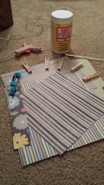 4. Mirar alrededor para el papel de scrapbook de repuesto que coincidirá con el tema del color. No necesita mucho y no tienen que ser en piezas grandes (estará cortando los trozos del tamaño de la cara de sus pinzas para pinzas de tamaño regulares, usted va a necesitar piezas aproximadamente 3 pulgadas de ½ de ½).