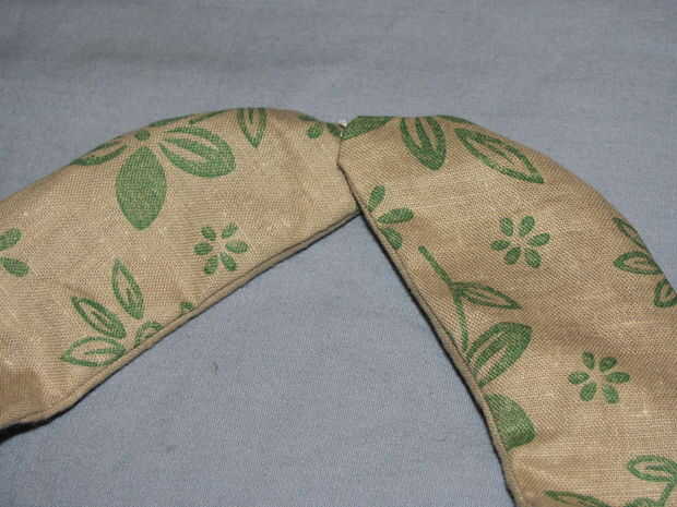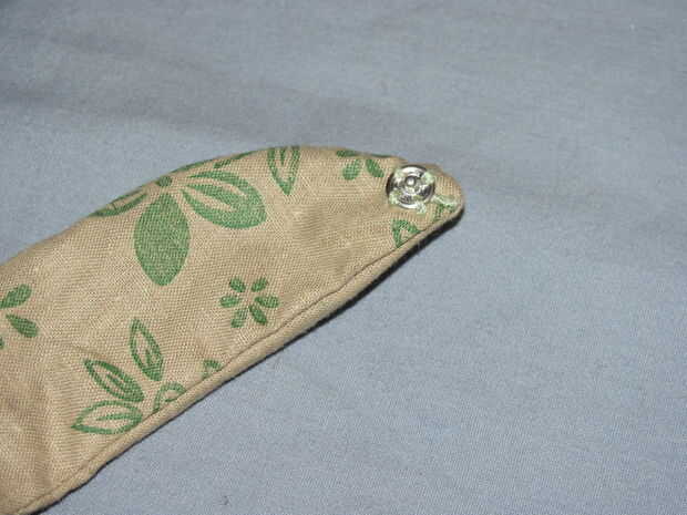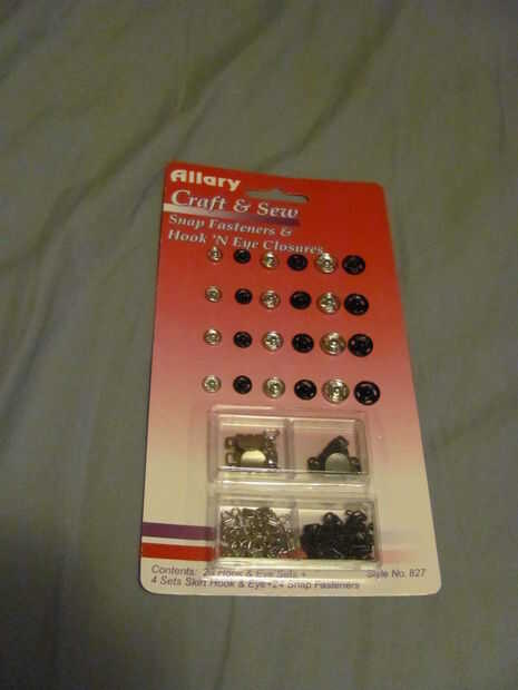 Mano coser los broches de presión metálicos.  Uno en cada uno de los "brazos" del babero (que parecen brazos no).  Poner uno en la parte delantera y uno en la parte posterior.