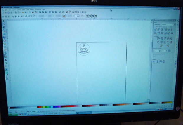 Ahora que tenía las gafas que ya era hora de planificar mis garabatos que iba a utilizar para personalizar los vasos. Usé una cinta métrica para obtener la anchura y la altura de mis gafas. Eran 3"(7.26cm) amplia y 3.5"(8.89cm) altos. Con esta información decidí que sería un buen tamaño gráfico sobre 2"(5.08cm) por 2"(5.08cm). Que el tamaño era totalmente arbitrario y podría hacerse más grande o más pequeño según su preferencia. Una vez supe qué tamaño sería mi gráfico puse acerca de la modificación de algunas de mis ilustraciones vectoriales existentes para adaptarse a las especificaciones. Utiliza Inkscape, un programa de código abierto vector arte pero se puede utilizar cualquier programa de arte de vector que desea. Una vez tuve mi gráfica lo quería salvarlo como un. PDF. Lo hice porque es el formato que necesita tu archivo esté en importar en el software de corte de señal que se utiliza para cortar con el cortador de vinilo. Con los archivos de hecho me he cargado mi bolso de mensajero con las gafas, mi unidad con mi. PDF archivos y nos dirigimos a la tienda de tecnología San Francisco.
