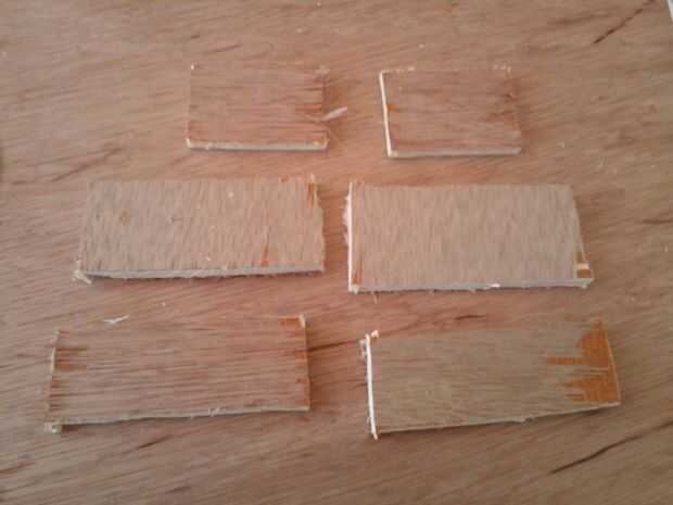 Para cortar esta madera dura sin duda trate de usar una sierra de cinta. Sin embargo, no tengo una sierra de cinta así que usé una sierra circular de batería en funcionamiento. Yo perfer la ligereza de la sierra porque al otro cable uno era un super pesado para cortar esto. Para acrílico utilice la sierra circular, Sierra de cinta, Sierra de mesa con 60-80 dientes, jigsaw y acabado con un router. Espuma de base utilizar un cuchillo. Poner una pinza en su proyecto al cortar. Pero puesto que este material es tan ligero, utiliza un peso de hierro. Después del corte se utiliza papel de lija o una lijadora de banda para alisar más las piezas del corte. Para el cuadrado de corte usé un taladro y presentó un cuadrado fuera del agujero taladrado.