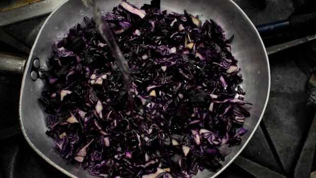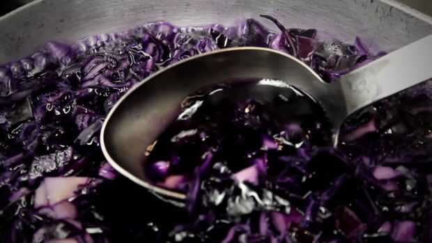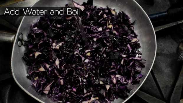 Cuando el inicio de agua a hervir le pueda ver el agua se vuelve oscuro púrpura, ahora usted puede parar el calor y retire la sartén del fuego.