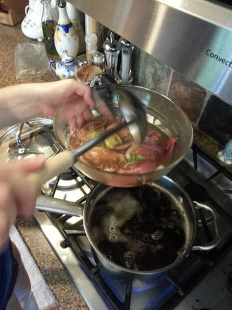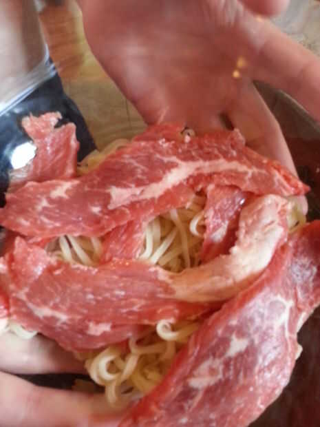 ** Si su carne es aún muy rojo o muy crudo, vierta el caldo en el lote, llevar a hervir y verter sobre la pasta y beef.* *