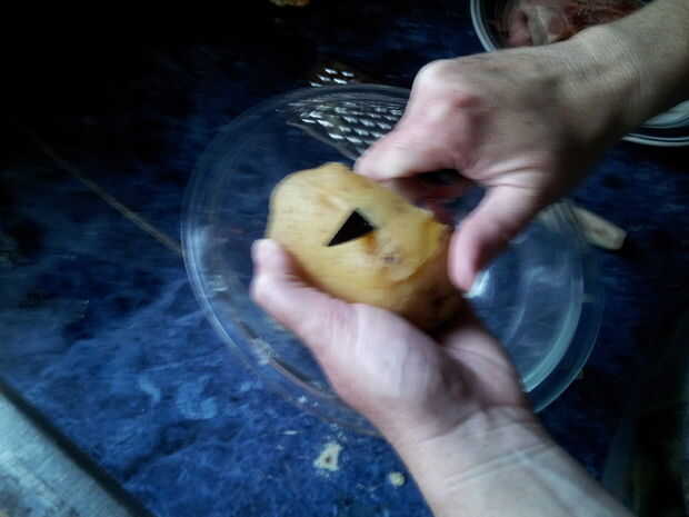 Una vez que las patatas se hayan enfriado, retire las pieles de patata con un cuchillo de cocina.