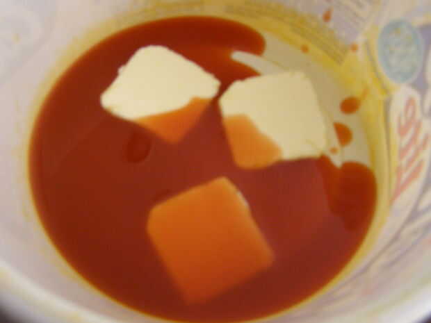 añadir en un cuarto taza de salsa picante. Nota, que se puede utilizar más o menos salsa para hacerla menos o más picante, pero creo que un cuarto taza es un buen picante. Además, es más fácil simplemente globo ocularlo más que medirlo.
