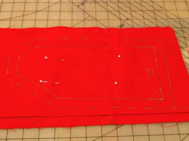 Prender las piezas de tela con el lado marcado hacia fuera.