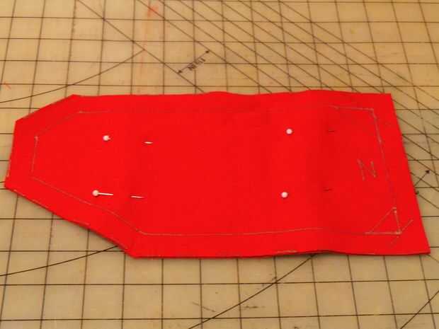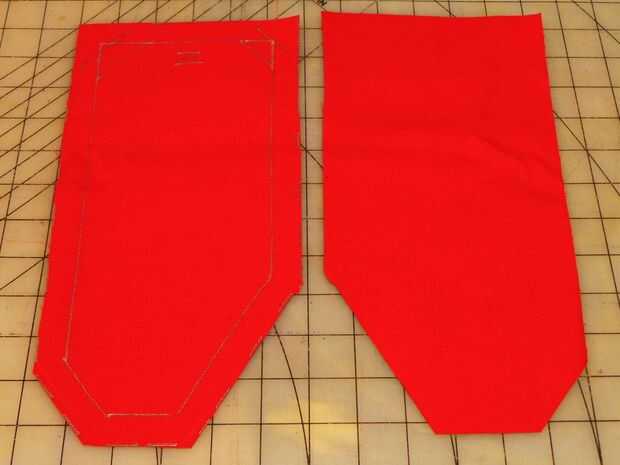 Corte a lo largo de la costura (línea punteada). Asegúrese de cortar la parte superior en las esquinas cuadradas como se muestra en el paso 6.