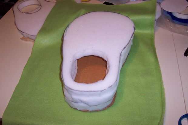Pegue uno de estos recortes a cada pie. Otra vez apretando bien por lo que tiene pegamento. (cuadro 3)